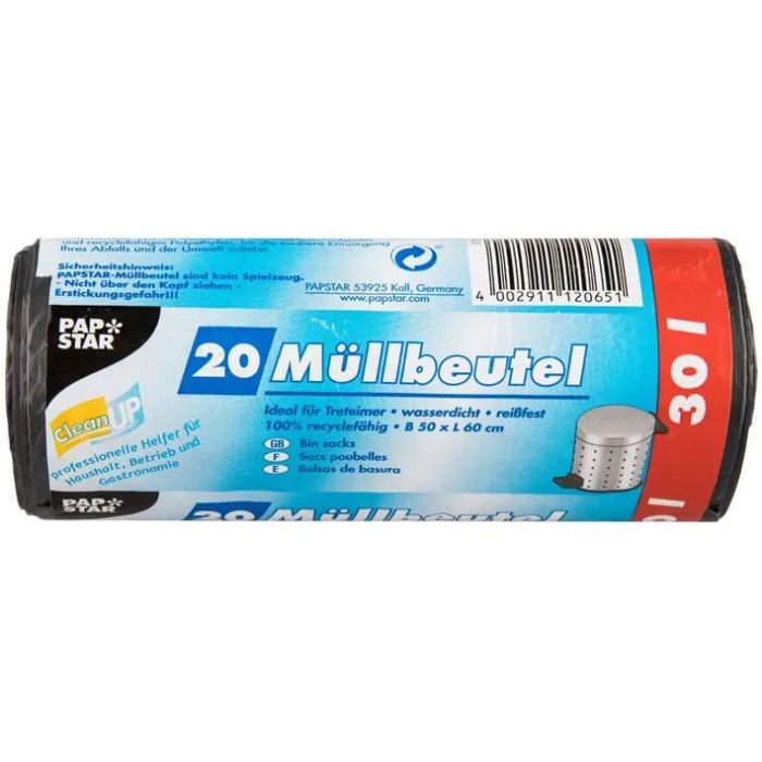 Sac poubelle pour les déchets 30 litres Gris STARPAK Lot de 20. N° Réf. 12065