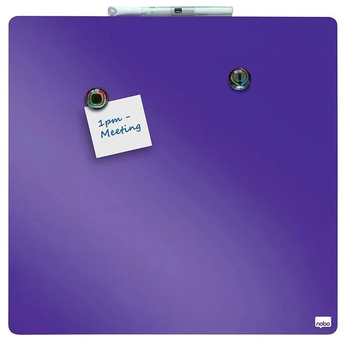 Tableau mémo carré magnétique pour afficher ou noter des rendez-vous et informations couleur Violet Format 360 x 360 mm NOBO. N° Réf. 1903897