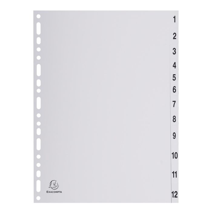 Intercalaires numériques en PP gris avec touches imprimées 1 à 12, 225 x 297 mm EXACOMPTA. N° Réf. 1912E