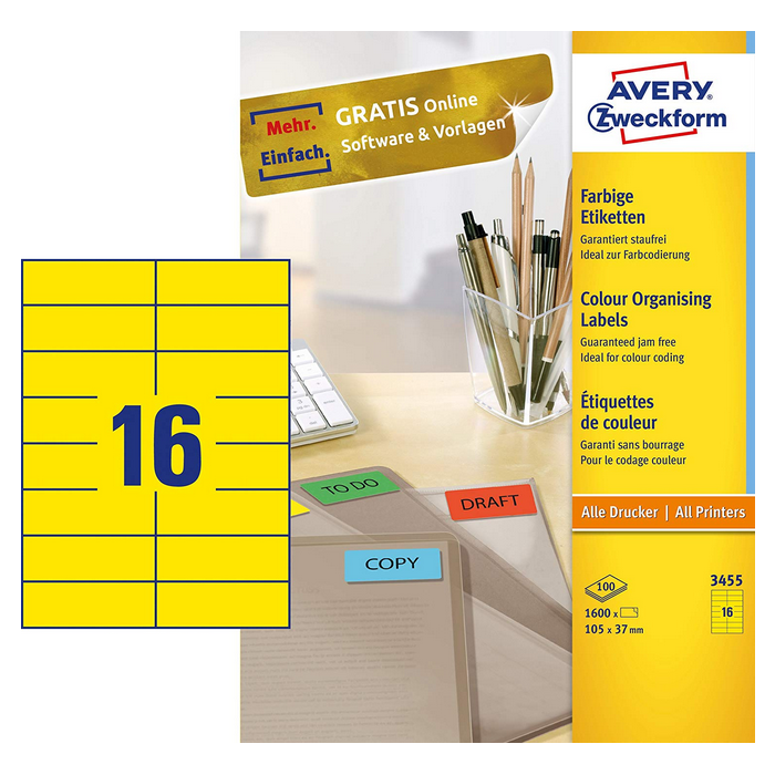 Étiquettes adhésives Jaunes pour un marquage de qualité d'Avery. N° Réf. 3455 AV