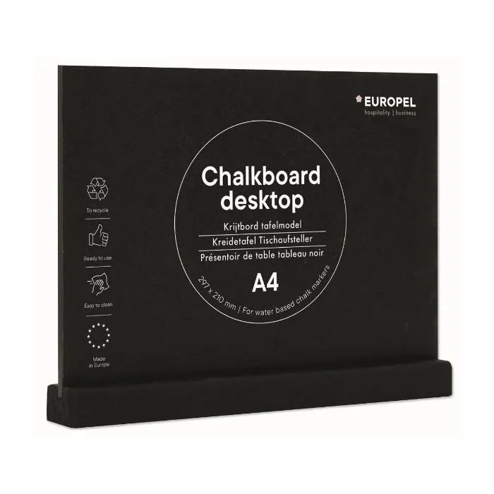 Présentoir de Table - A4/Paysage - Ardoise avec socle en bois Noir EUROPEL