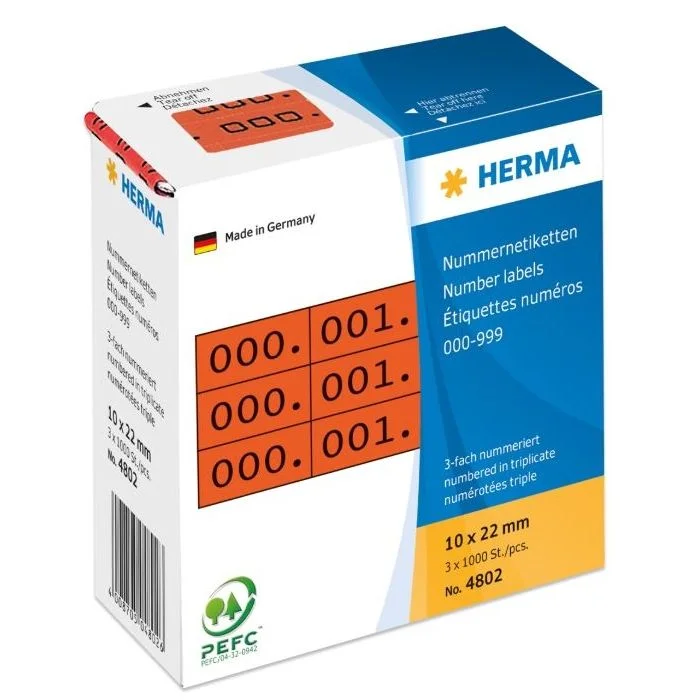 Etiquettes à triple numérotation - Noir/Rouge HERMA