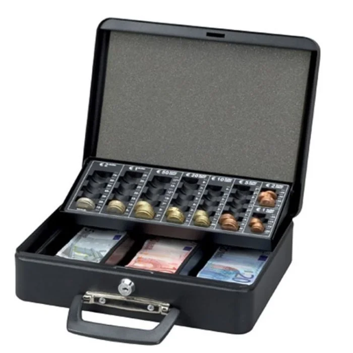 Caisse à monnaie 300 x 255 mm pour billets et pièces en acier noir de MAUL. N° Réf. 5631490