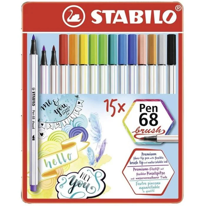 Stylo-feutre Pen 68 Brush - Boite en Métal STABILO Lot de 15