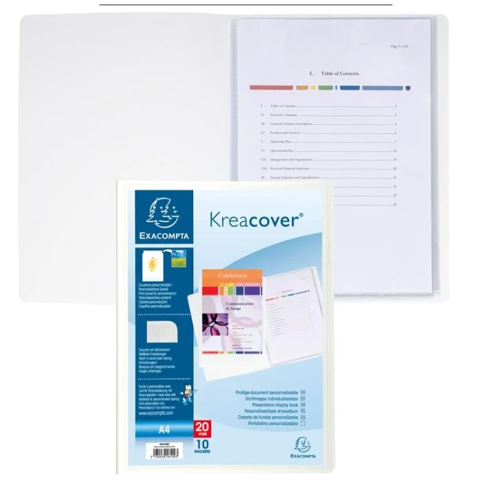 Protège-documents de 20 vues personnalisable de présentation couleur Blanc Opaque Kreacover EXACOMPTA. N° Réf. 58109E