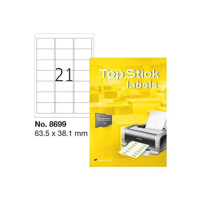 Etiquettes autocollantes permanentes 63,5 x 38,1 mm à imprimer pour étiquetage et marquage de TOP STICK. N° Réf. 8699