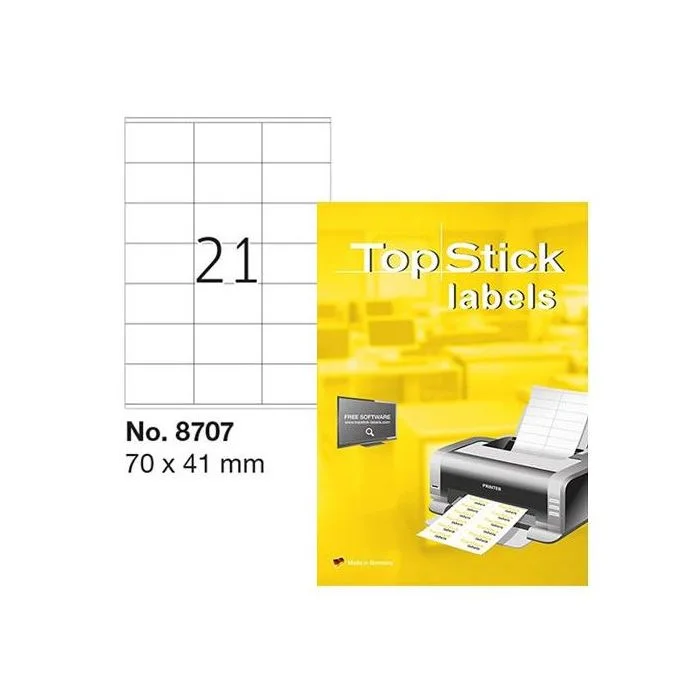 Etiquettes autocollantes permanentes 70 x 41 mm à imprimer pour étiquetage et marquage de TOP STICK. N° Réf. 8707