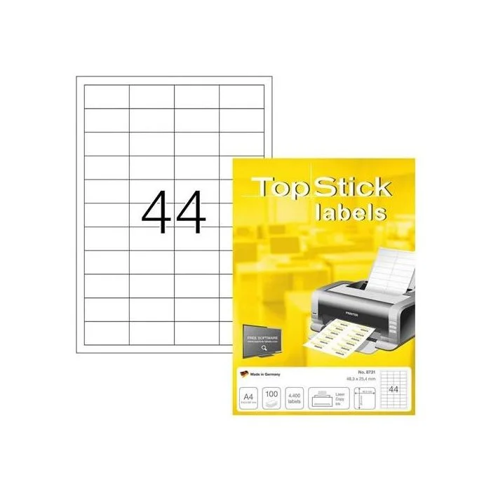 Petites Etiquettes autocollantes permanentes 48,3 x 25,4 mm à imprimer pour étiquetage et marquage de TOP STICK. N° Réf. 8731