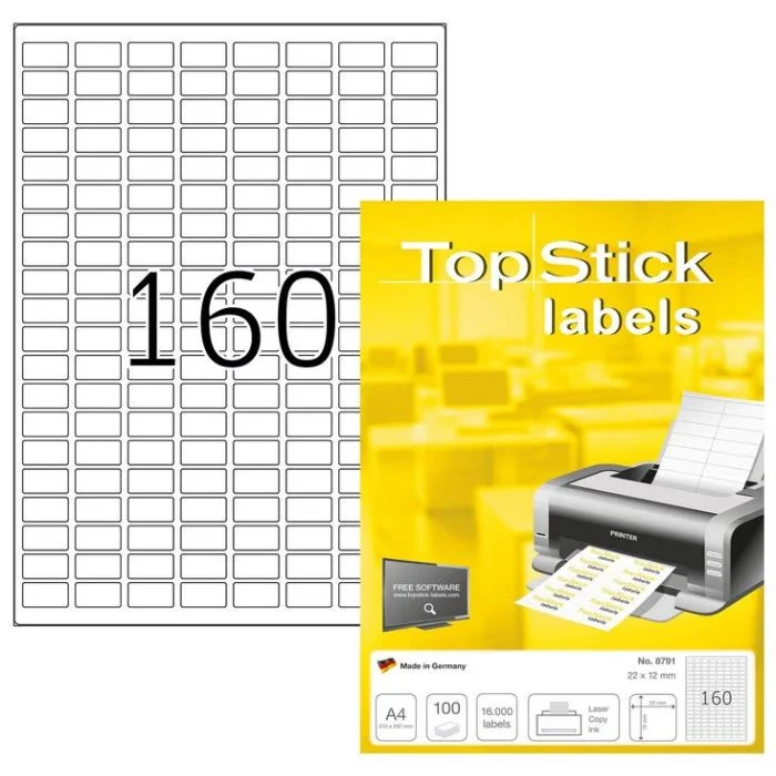 Étiquettes adhésives blanches - 22 x 12 mm TOP STICK pour copieurs, imprimantes laser et jet d'encre. N° Réf. 8791