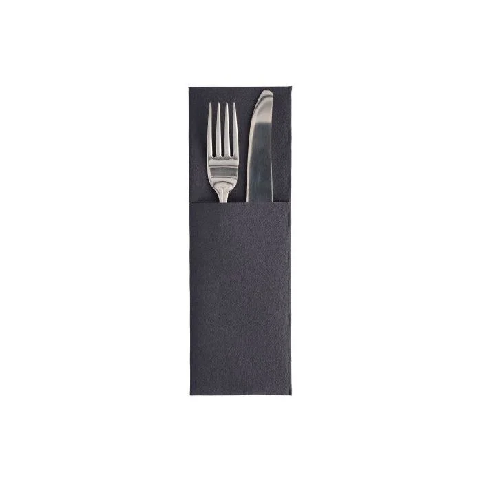 Pochette Serviette en papier noir pour couverts, pliage 1/8 (Restaurant, Hôtel, Table d'Hôtes, Cantine ou Traiteur) de PAP STAR Royal Collection. N° Réf. 89418