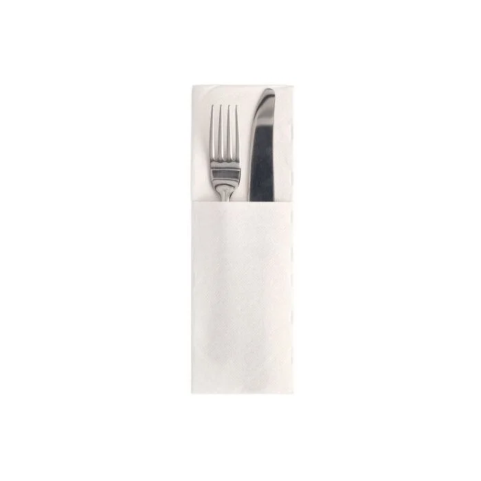 Pochette Serviette en papier blanc pour couverts, pliage 1/8 (Restaurant, Hôtel, Table d'Hôtes, Cantine ou Traiteur) de PAP STAR Royal Collection. N° Réf. 89419