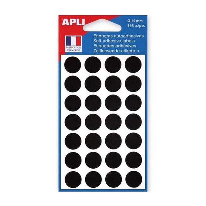 Paquet de gommettes APLI autocollantes Noires de 15 mm : Praticité et visibilité garantie. N° Réf. 111847