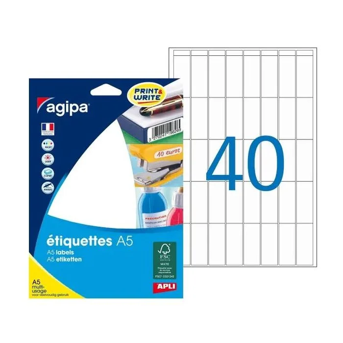 - Conditionnement : 40 étiquettes par feuille A5 (16 feuilles).
