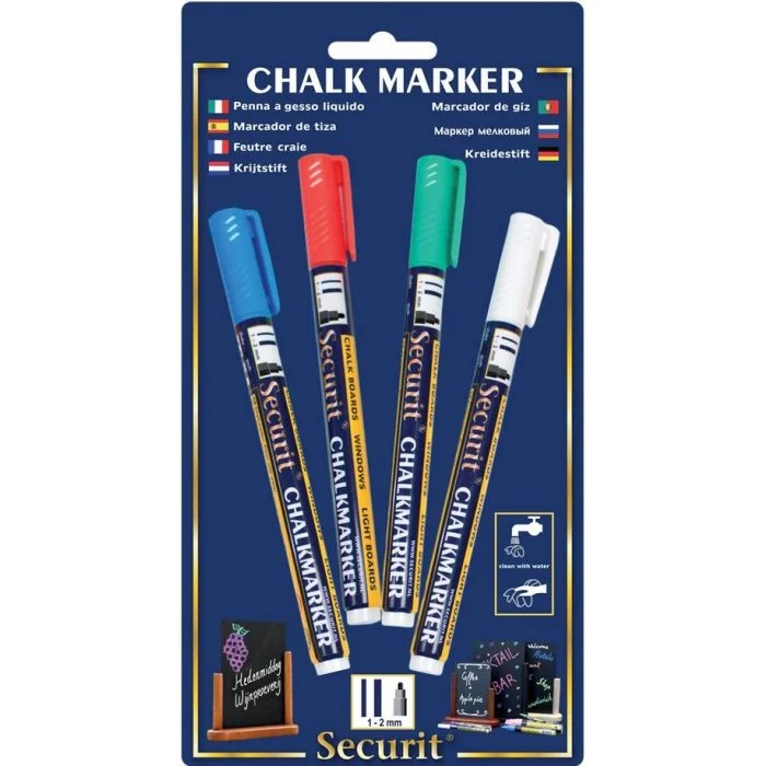 Feutre à craie liquide 1 - 2 mm - Assortiment basic SECURIT Lot de 4