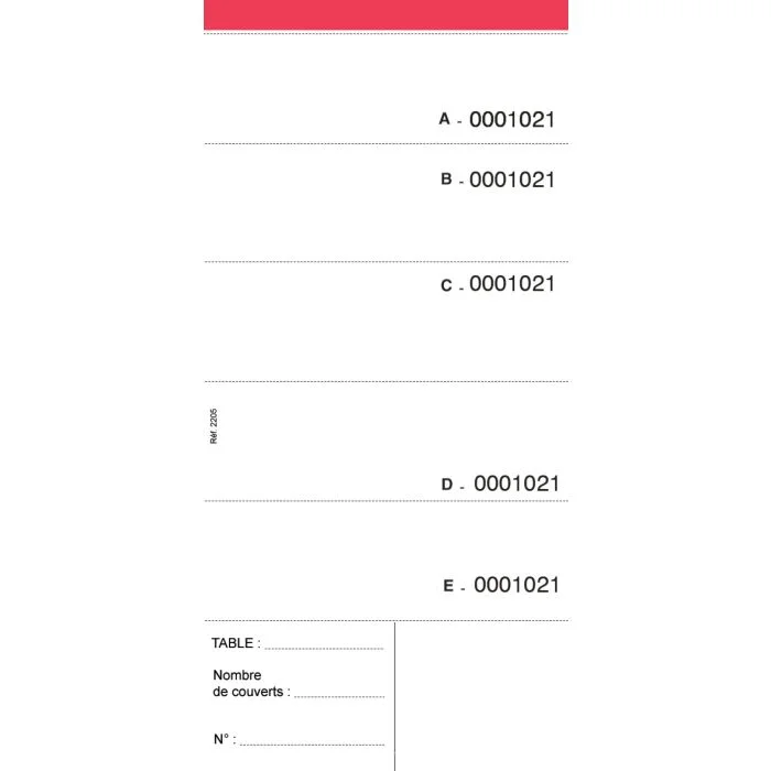 Bloc Brasserie pour la prise de Commande avec 5 coupons détachables 200 x 96 mm ELVE. N° Réf. 2205