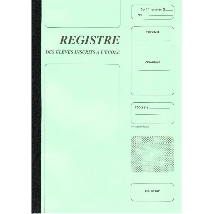 Registre d'enregistrement des élèves fréquentant l'école de marque ELVE. N° Réf. 36287