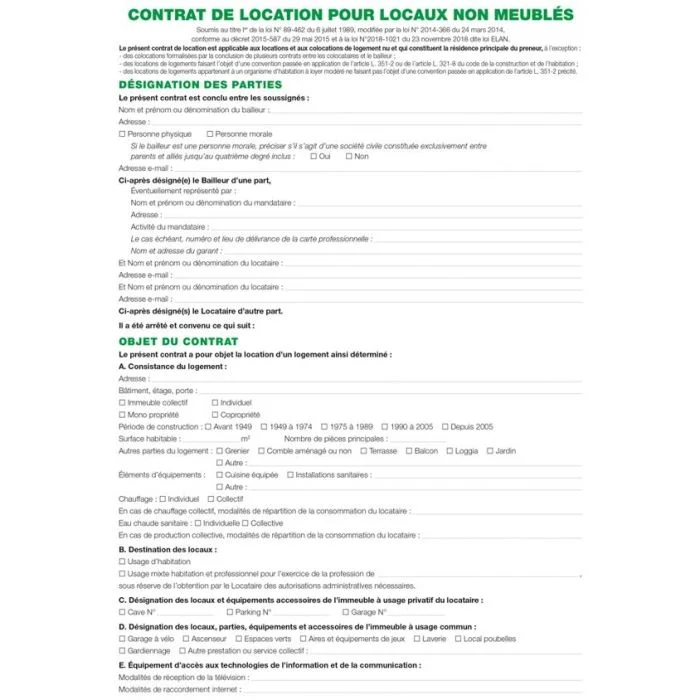 Contrat de location pour locaux non meublés.
