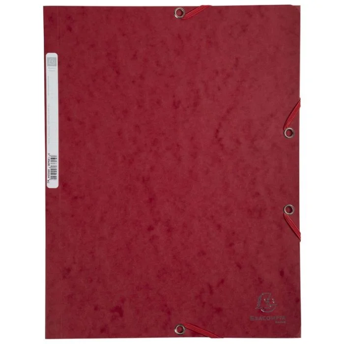 Chemise cartonnée à élastiques et 3 rabats carte lustrée 400g couleur Cerise EXACOMPTA. N° Réf. 55525E