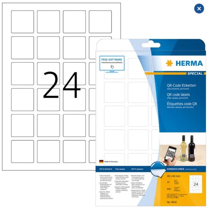 Étiquettes pour QR Code - 40 x 40 mm - Blanc HERMA Lot de 600
