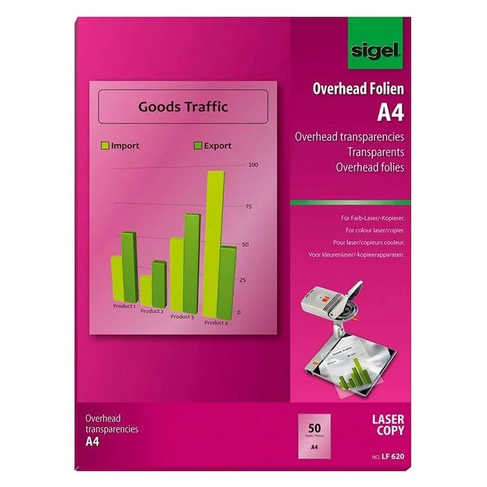 SIGEL Lot de 50 Films transparents pour imprimantes Laser et photocopieuse en couleur. N° Réf. LF620