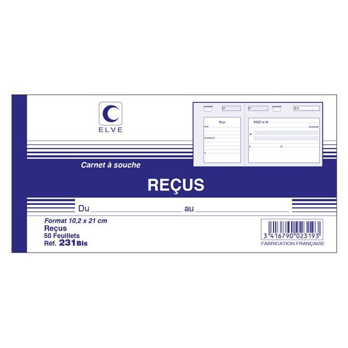 • Carnet de Reçus vendu uniquement au conditionnement indiqué.