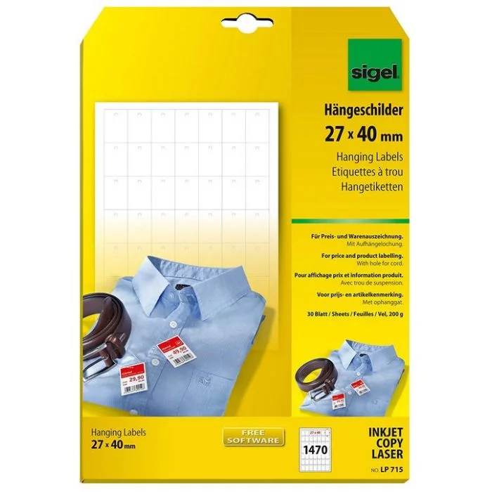 Étiquettes blanches à trous pour affichage de prix, 27 x 40 mm de SIGEL. N° Réf. LP715